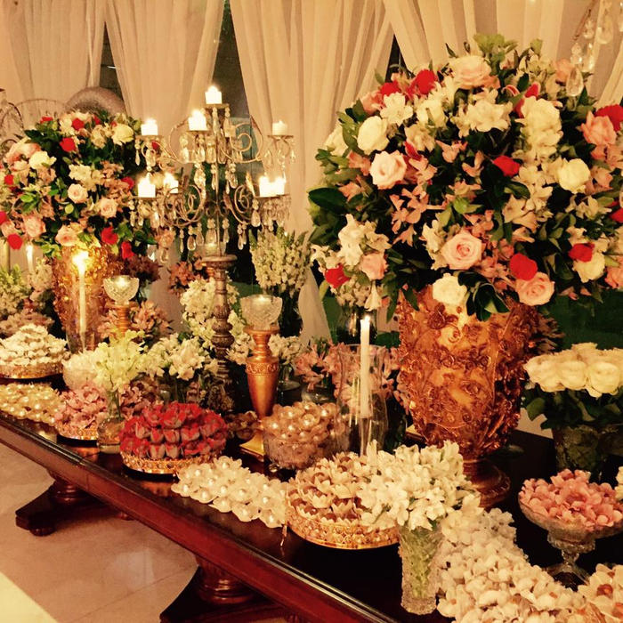 5 a 6 é a média nas opiniões de cerimoniais que eu já ouvi nesses 6 anos de experiência, sobre a quantidade de doces por convidado. Como tudo no casamento: veja seu orçamento. Nada impede de optar por 4, como já vi festa com 10. Obviamente é importante que não falte, que os doces sejam de fato gostosos e no tamanho de doces finos (3 cm de diâmetro) aliás aproveito para dizer que esse é o tamanho de todas as nossas forminhas e que nas rosas e nas de tecido o tamanho é maleável até 4 cm. Em relação aos doces que vão na mesa, isso vai depender do espaço disponível, quantidade de doces, opinião do decorador e sua própria opinião.